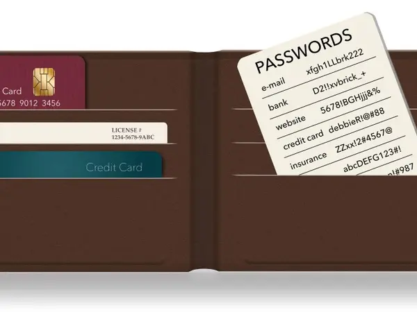 Never store passwords on paper in your purse. Written passwords can easily fall into the wrong hands, leading to account breaches. Instead, use a secure app on your phone to store them.