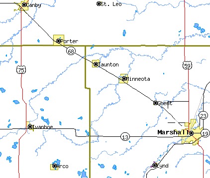 Map of the area northwest and southwest of Marshall. Photo courtesy of Census Tiger Map tool.