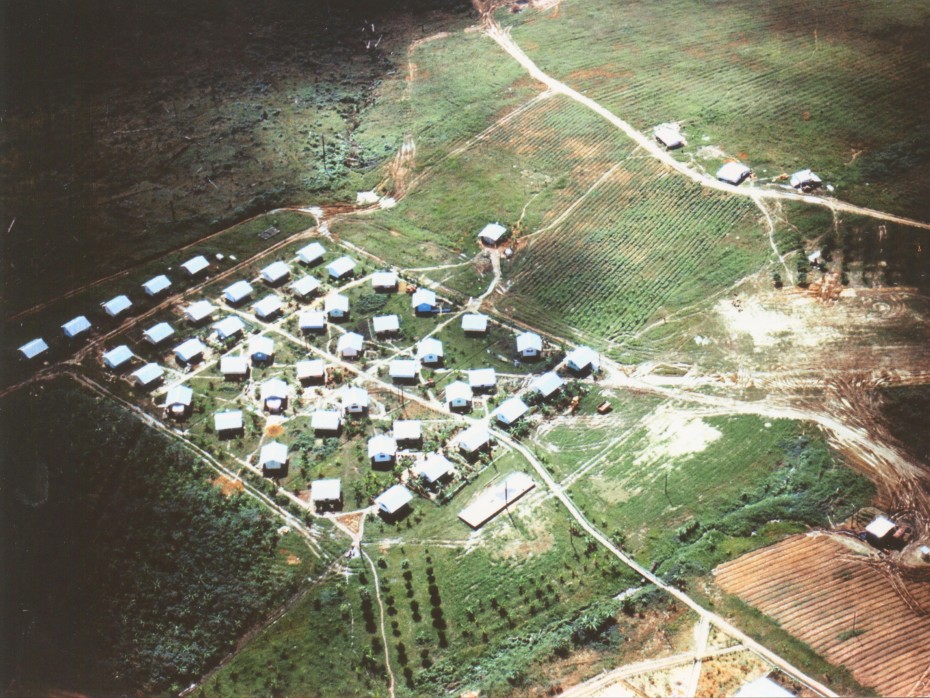 Aerial view of Jonestown, Guyana, following the November 1978 massacre. Photo by unknown United States military employee. Public domain.