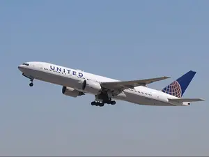 A United Airlines 777-200 departing Los Angeles for Honolulu, 2021. Photo courtesy of Timothy Powaleny under CC BY-SA 4.0.